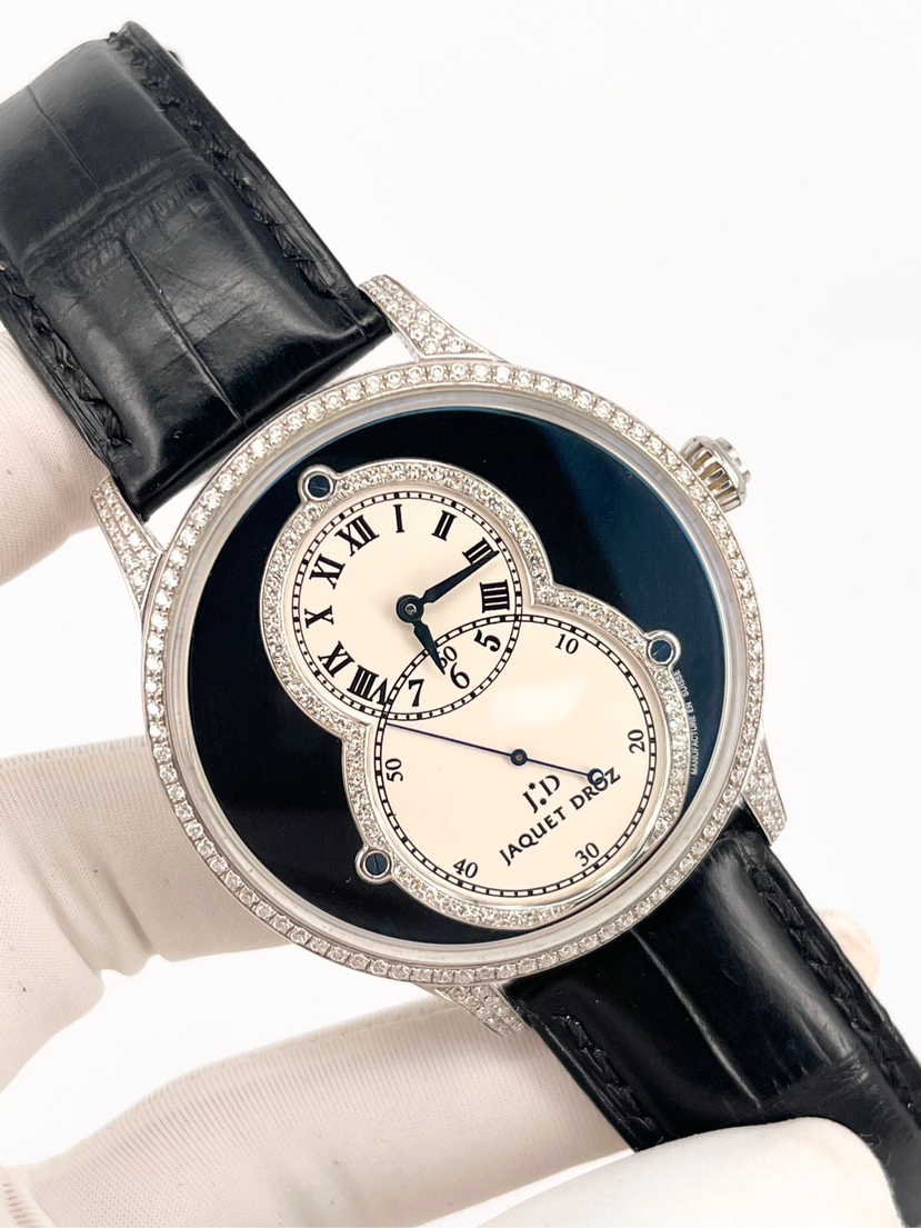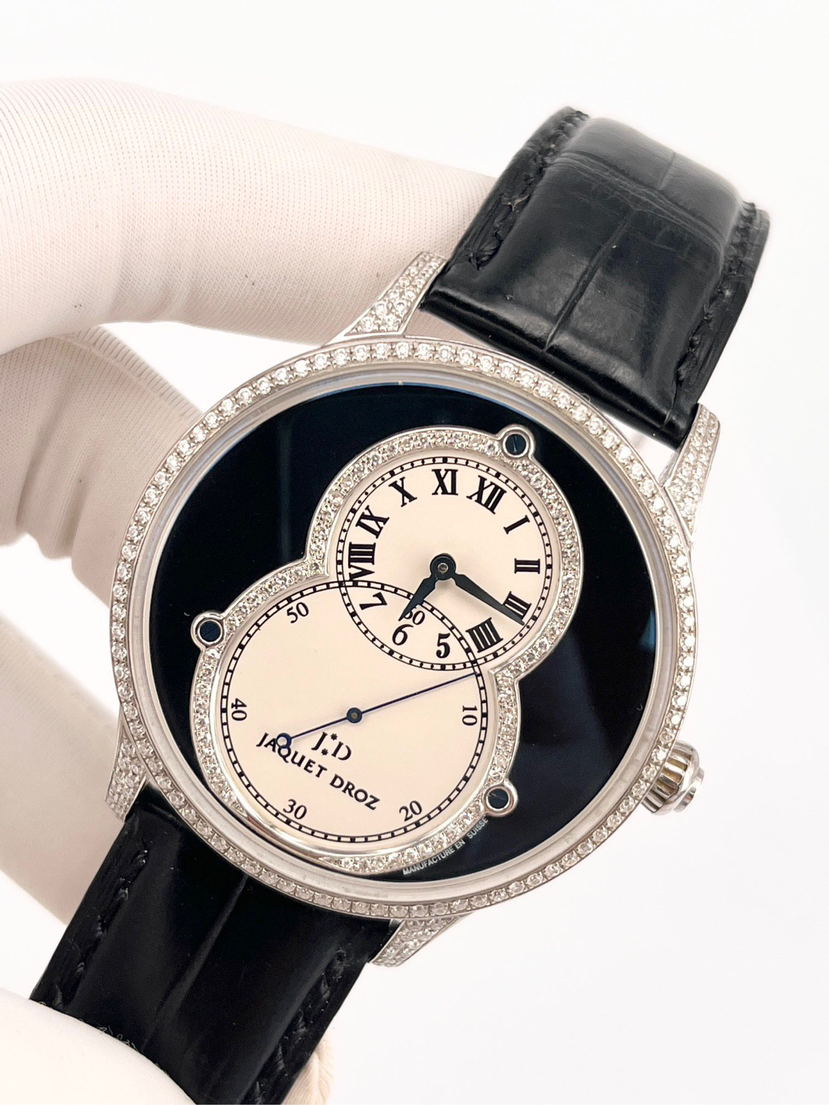雅克德罗J003034225,18K白金材质 全自动机械 机芯,直径43mm 特别8字盘,外圈后镶,公价346000 超级特价