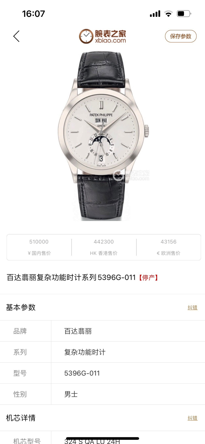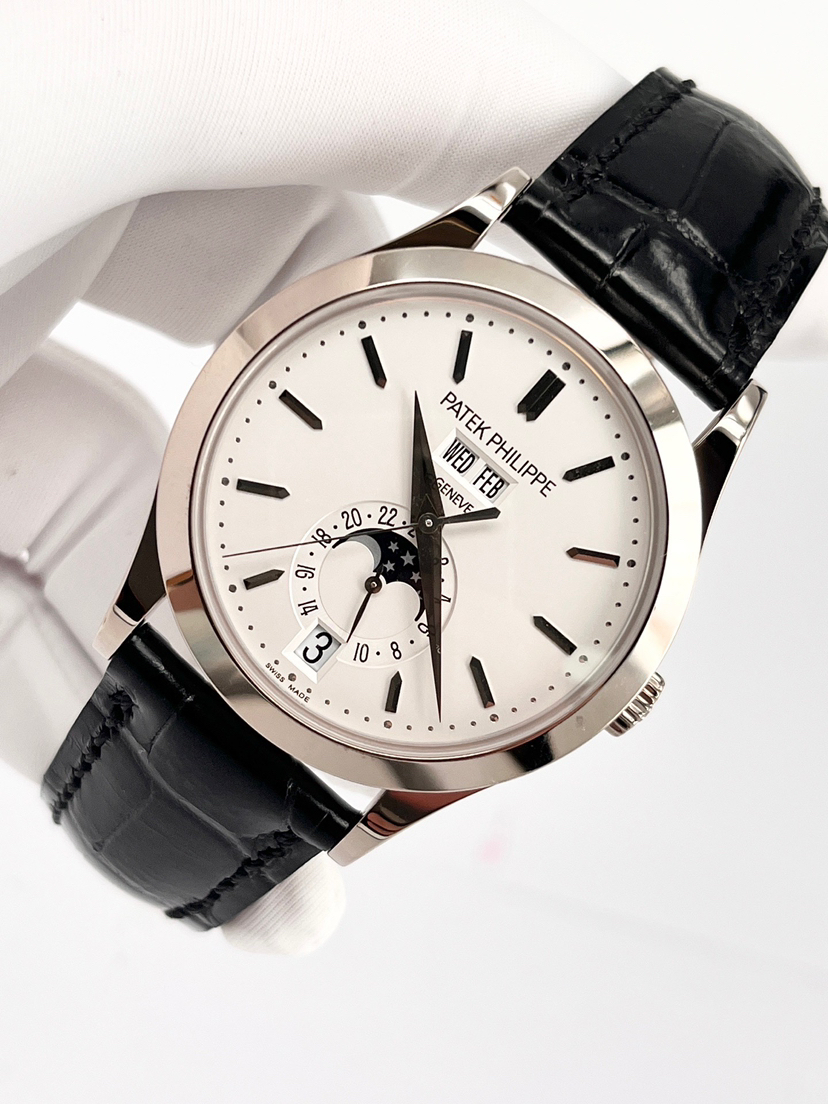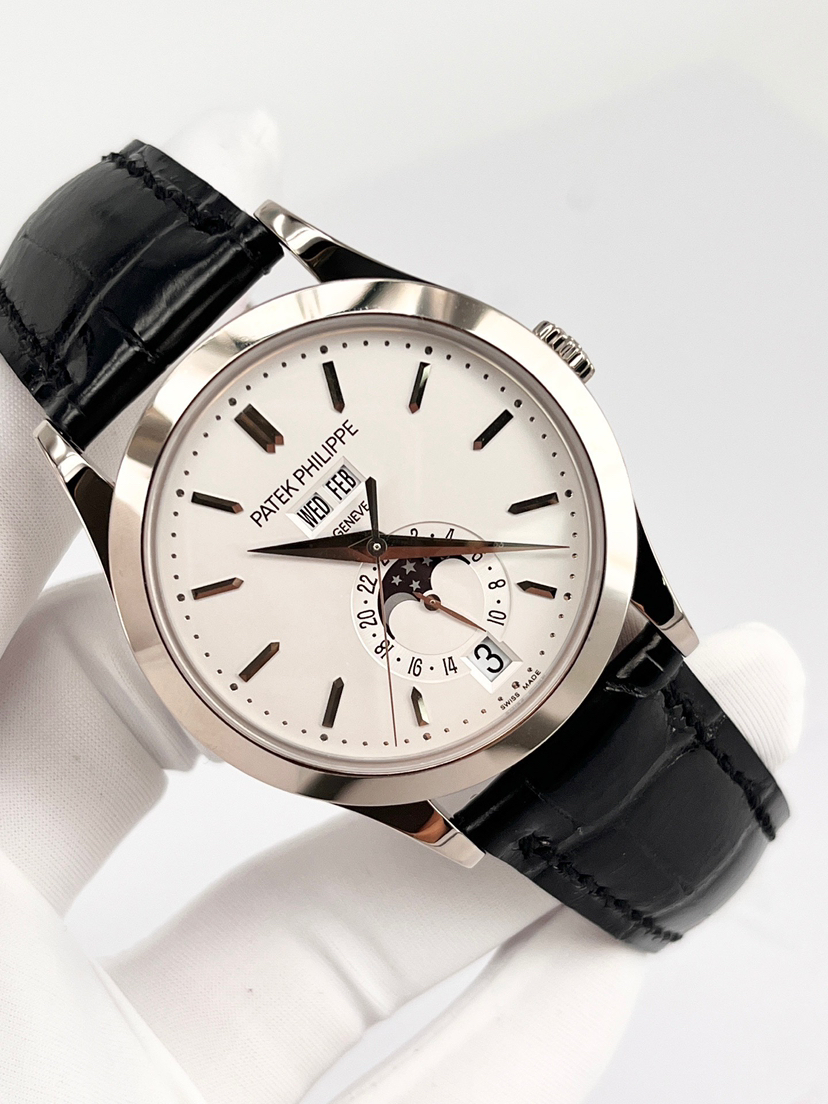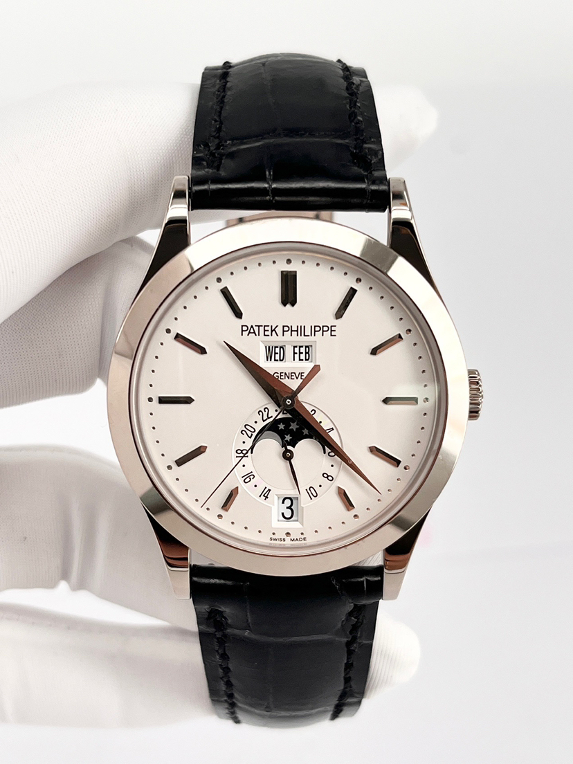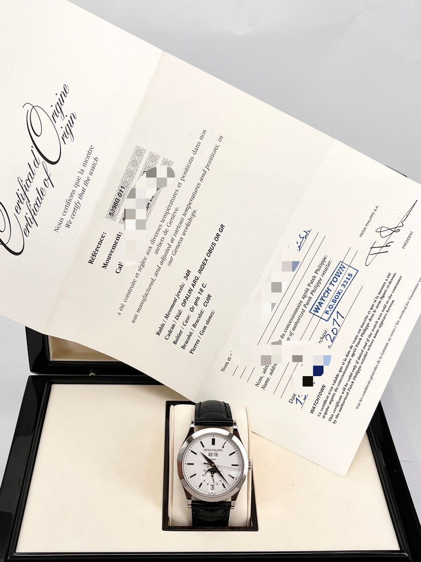 百达翡丽5396G-011,2011年全套未使用双P灯笼扣,复杂功能时计系列,18K白金材质,日期显示,星期显示,月相功能,公价433400,现货好价