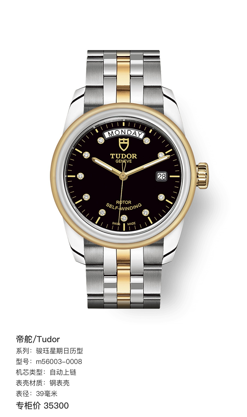 帝舵/Tudor 骏珏星期日历型 m56003-0008 自动上链 钢表壳 39毫米 专柜价35300