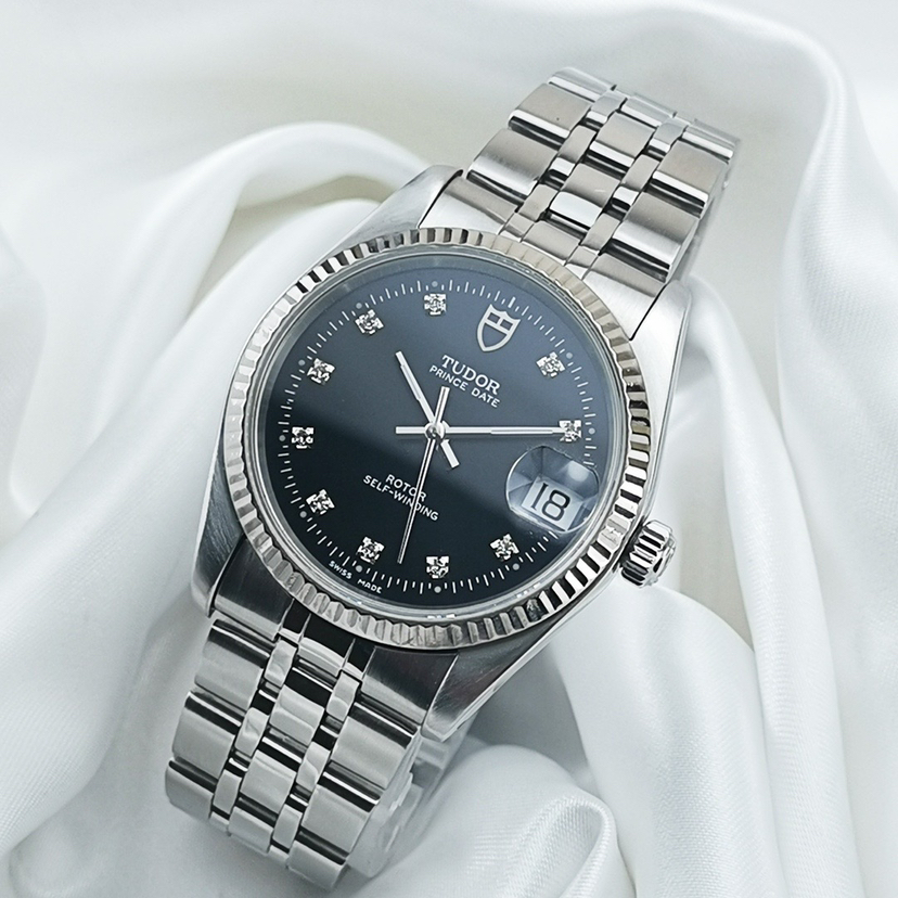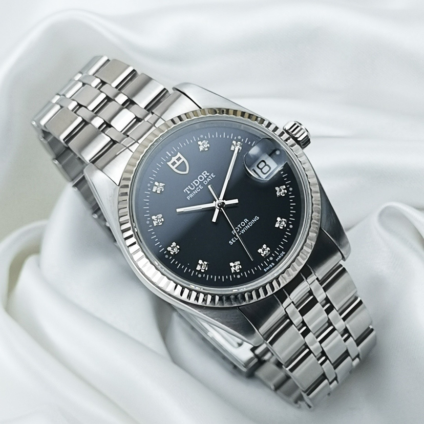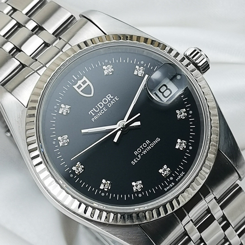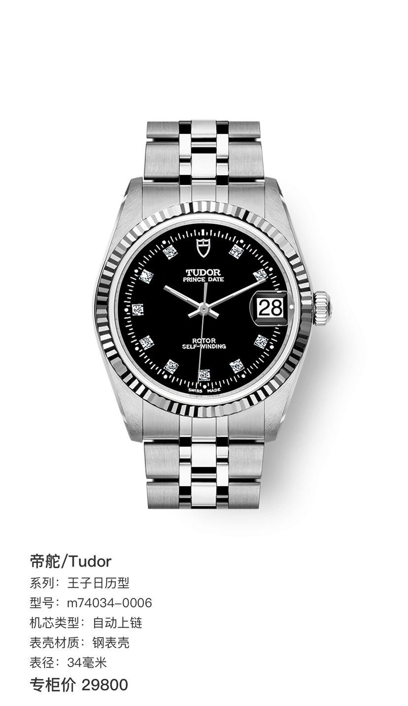 帝舵王子型自动机械男表M74034-0006黑钻盘18K白金精钢 表径34mm,公价29800