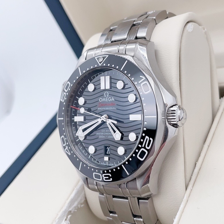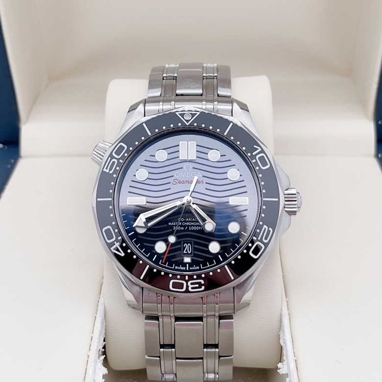 欧米茄黑钢海马300系列210.30.42.20.01.001,自动机械男款,表径42mm,钢带黑盘,黑陶瓷外圈,23年8全套,公价48100,现好价~