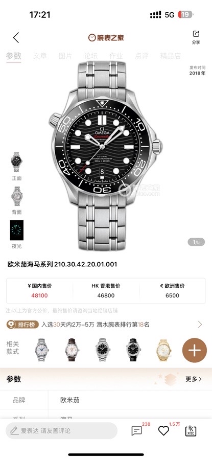 欧米茄海马210.30.42.20.01.001机械男性