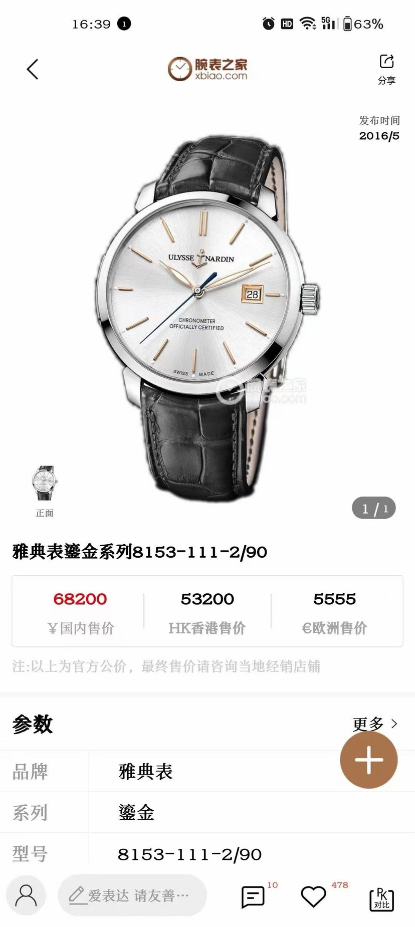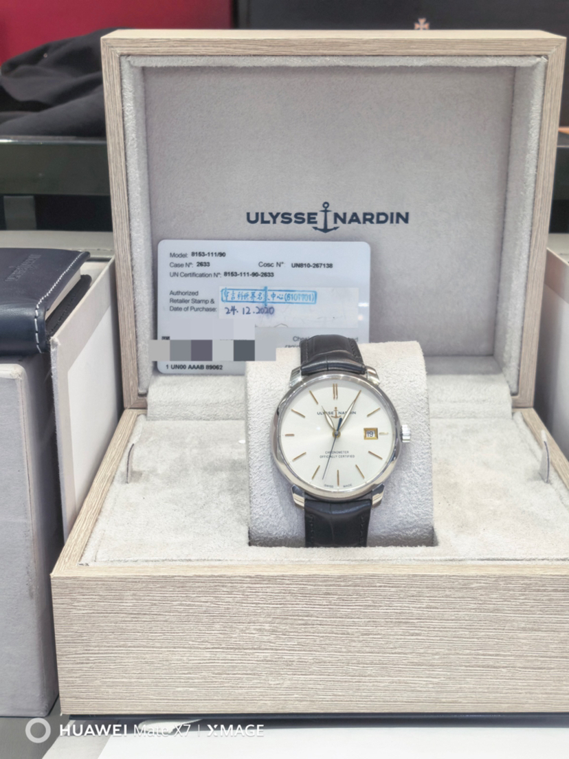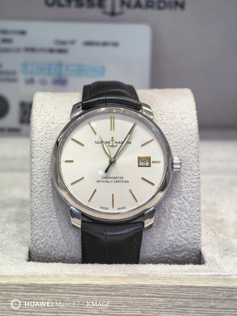 20年全套 雅典/Ulysse Nardin 鎏金 8153-111-2/90 自动机械 不锈钢 40mm男士腕表 专柜价68200