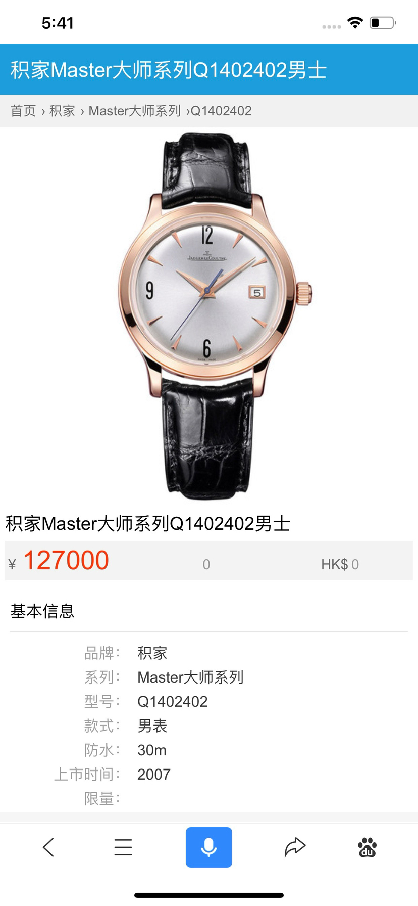 专柜价:127000元