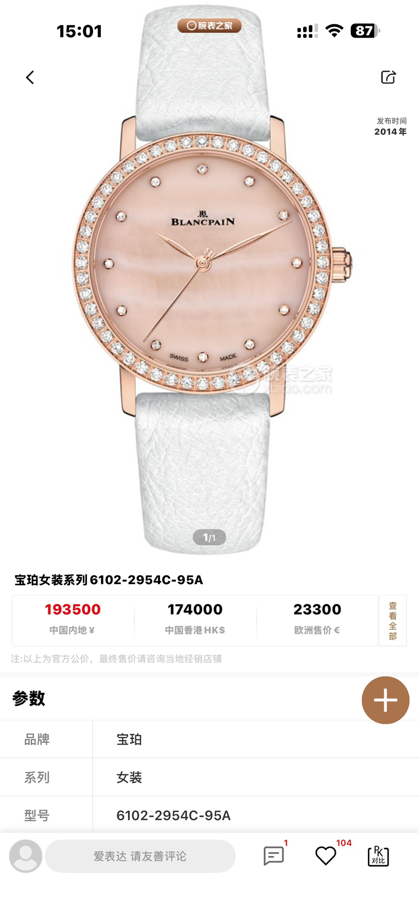 宝珀/Blancpain 女士腕表系列 6102-2954-95A