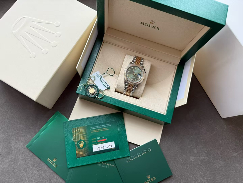 劳力士/Rolex 日志型 m126233-0025 自动上链 黄金钢(蚝式钢与黄金的组合) 36毫米 专柜价146300。库存全新未使用全套24年3月保卡,全膜二维码均在,现货好价。