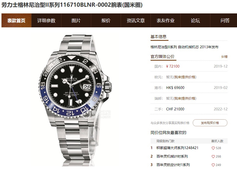劳力士/Rolex 格林尼治型 II m116710blnr-0002 自动机械机芯 蚝式钢 40MM 附件:13年全套 专柜价69600