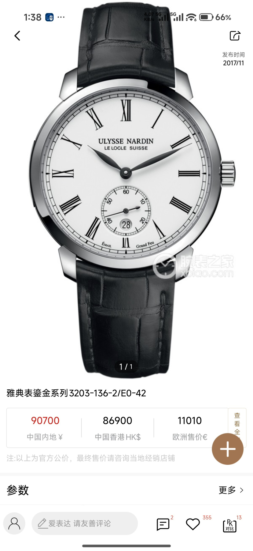 雅典/Ulysse Nardin 鎏金 3203-136-2/E0-42