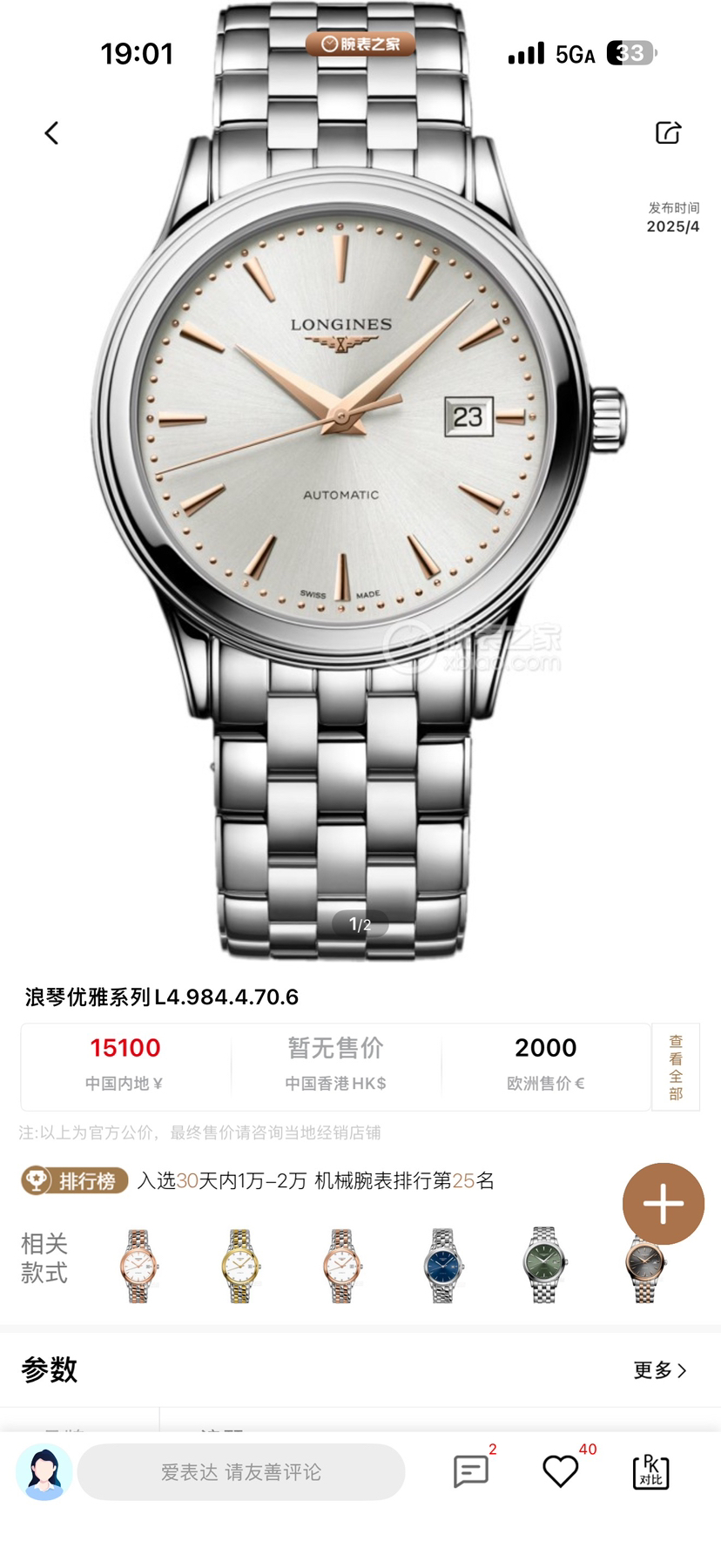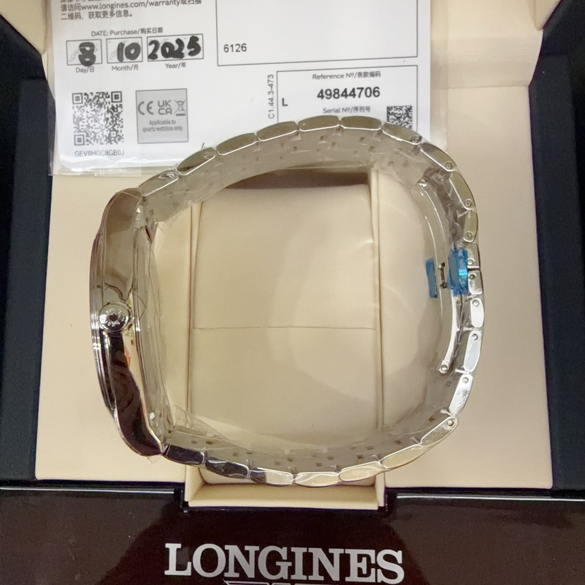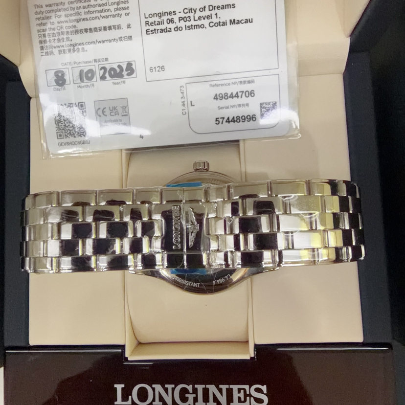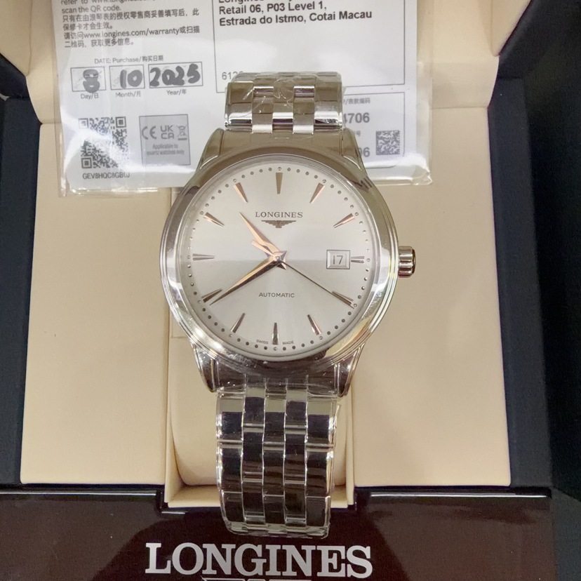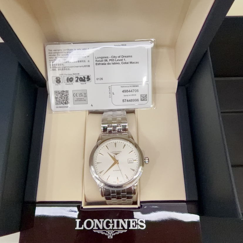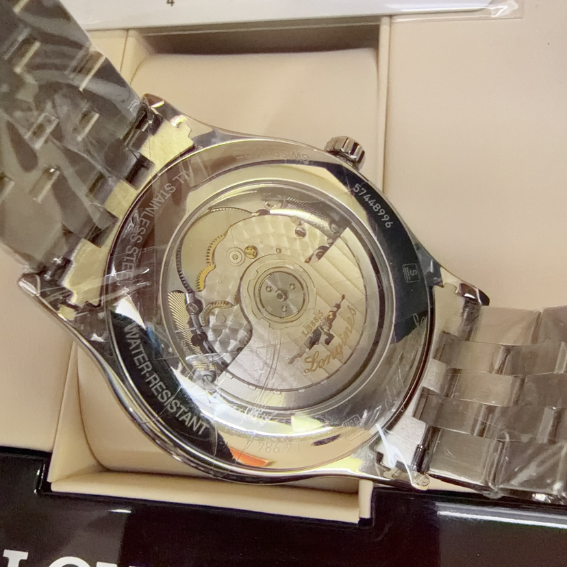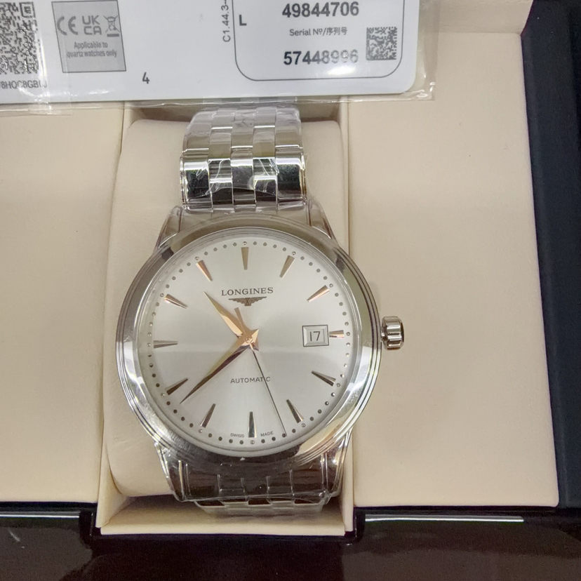 25年未使用 全套 全新 浪琴/Longines 军旗系列 L4.984.4.70.6 自动机械 40.00mm 精钢表带 白盘 日期显示 专柜价15100