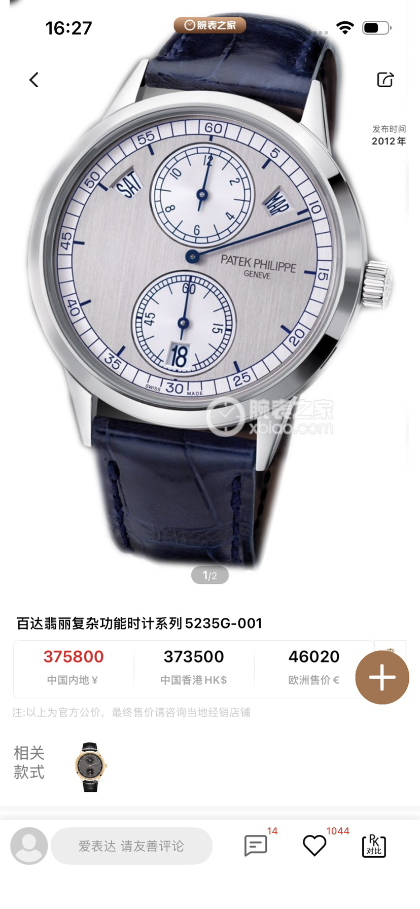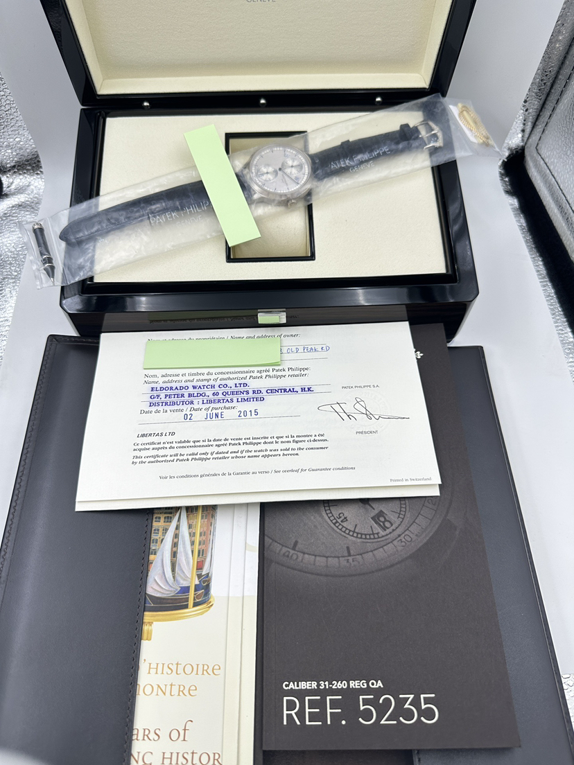 百达翡丽5235G-001,18k白金材质,40.5mm表径,自动机械,2015年全套未使用,现货好价