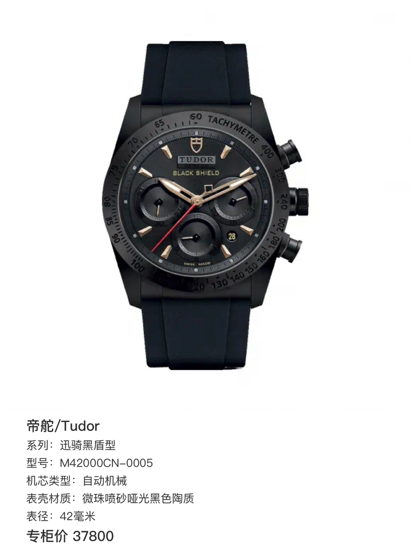帝舵/Tudor 迅骑黑盾型 M42000CN-0005 自动机械 微珠喷砂哑光黑色陶质 42mm表径 专柜价37800