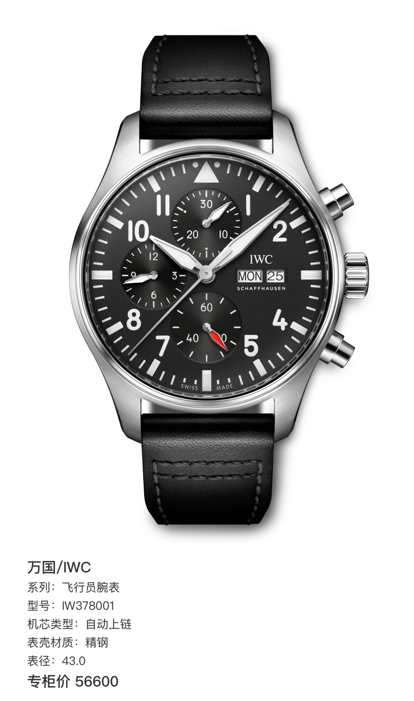 万国/IWC 飞行员腕表 IW378001 自动上链 精钢 43.0 专柜价56600。国行25年全新全套未使用,现货好价!