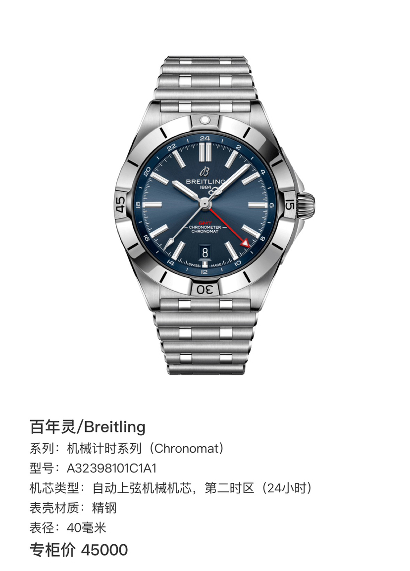百年灵机械计时(Chronomat)A32398101C1A1机械男性