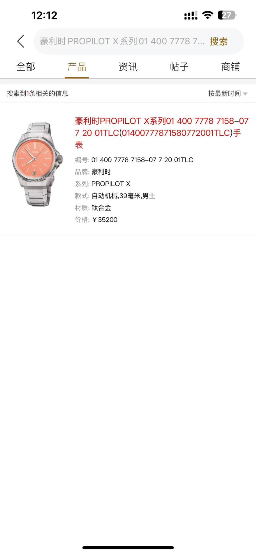 未使用26年卡 全膜 豪利时/Oris 01-400-7778-7158-07-7-20-01TLC 自动上链 多片式钛合金表壳 39.00 MM 专柜价35200