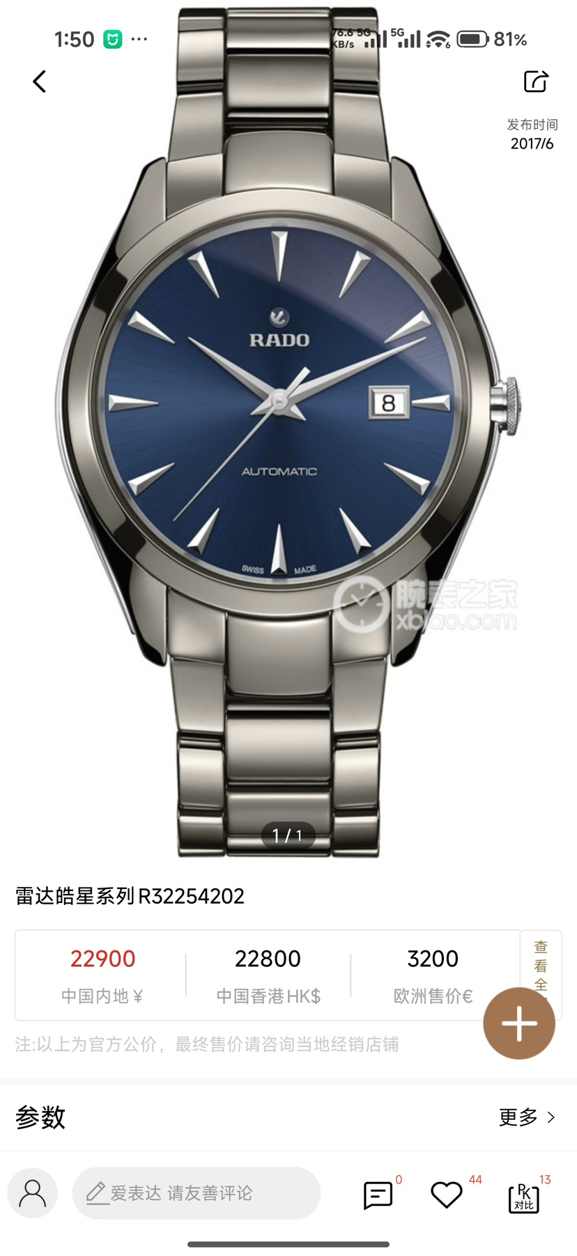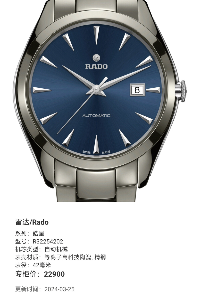 雷达/Rado 皓星 R32254202 自动机械 等离子高科技陶瓷, 精钢 42毫米 专柜价22900。国行全新未使用26年2月卡,现货好价!
