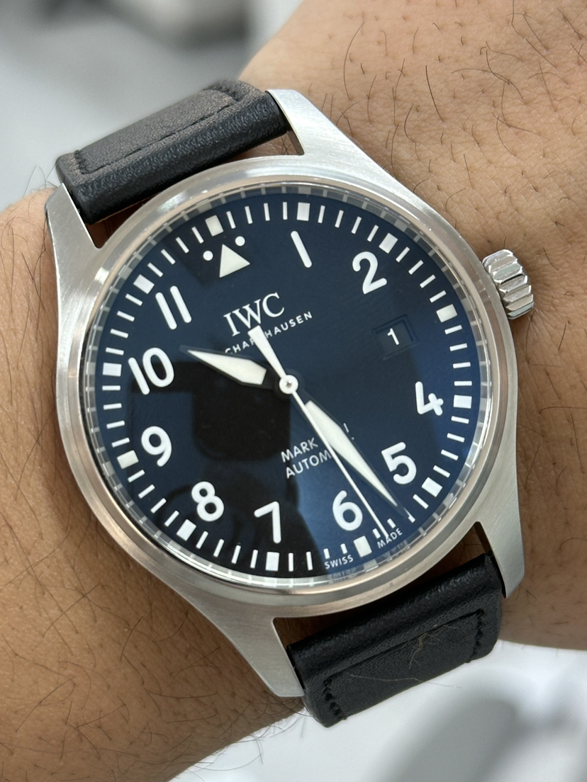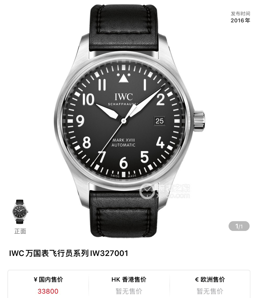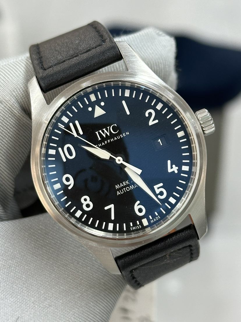 万国/飞行员IW327001 男士自动机械腕表 动力储备40个小时 表径40mm 黑色表盘 采用精钢材质打造 搭配针扣 日期显示 公价33800 现货好价