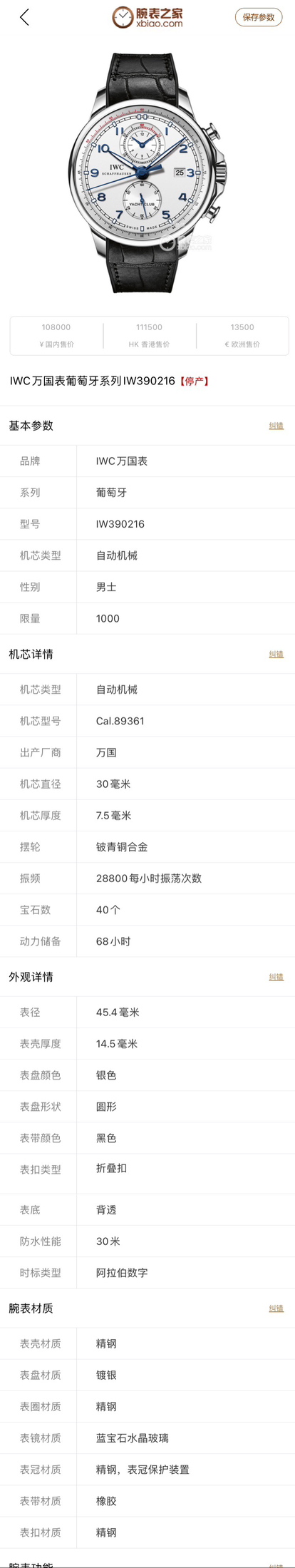 万国葡萄牙IW390216机械男性