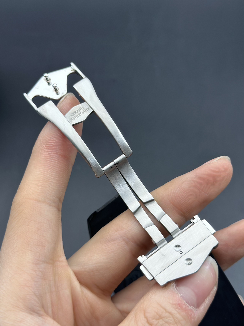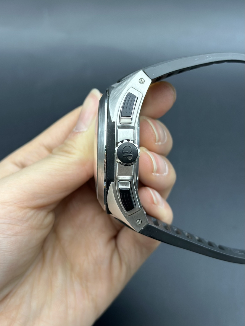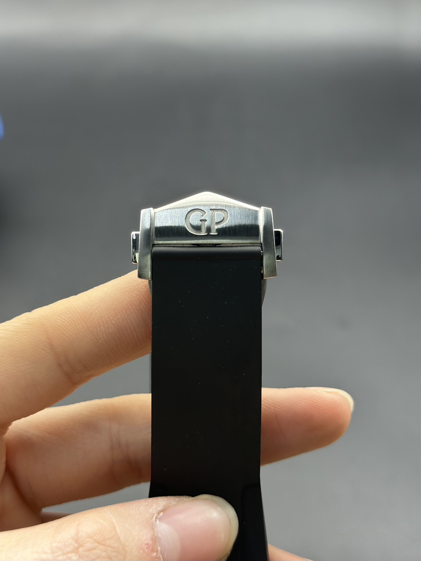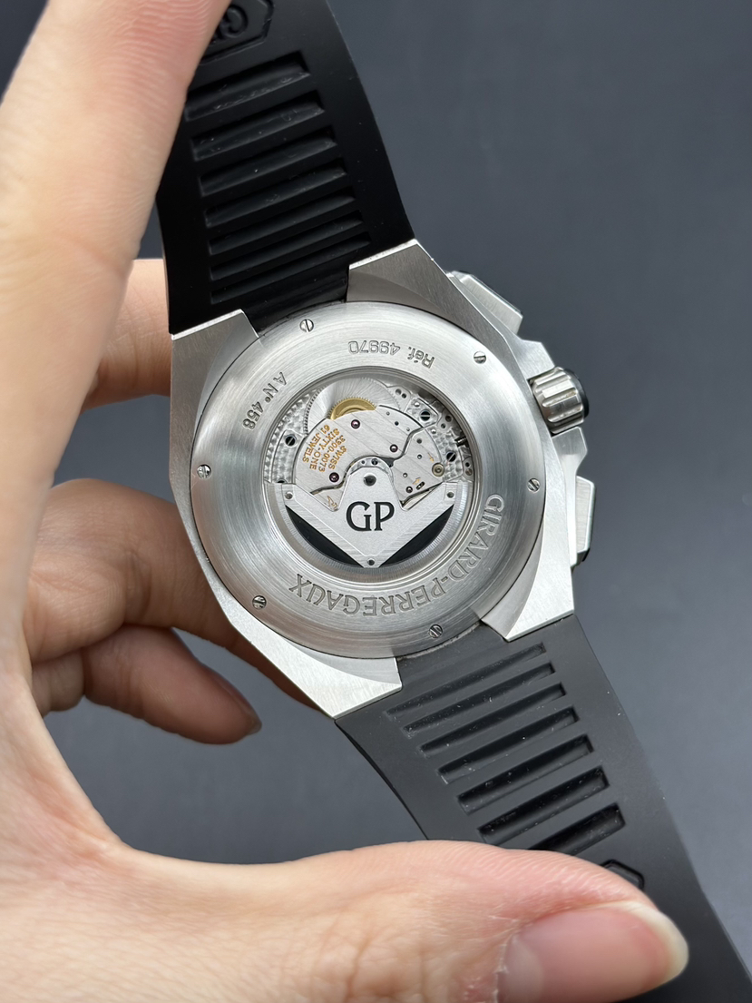 芝柏 Chrono Hawk系列 49970-11-131-HDBA男士机械腕表 表径44mm 厚度15mm 白色雕刻图案表盘,GP03300-0073自产机芯,熊猫眼表盘,两眼计时和日期显示 黑色橡胶表带 品相完美 专柜售价139000 现货好价!