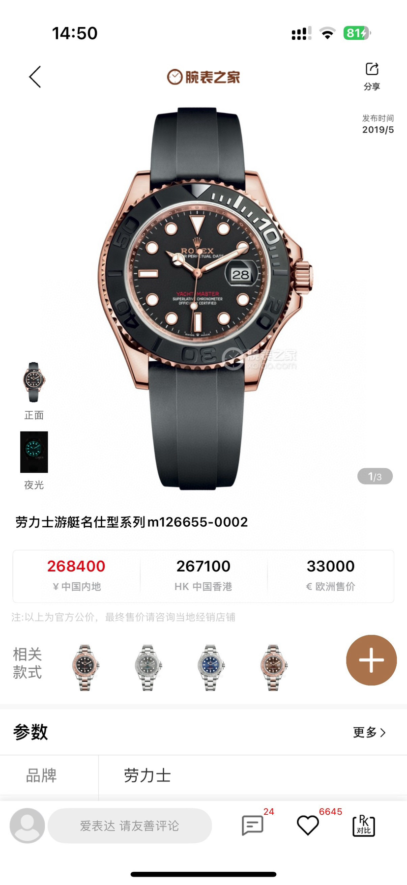 劳力士游艇名仕型M126655-0002自动机械男性