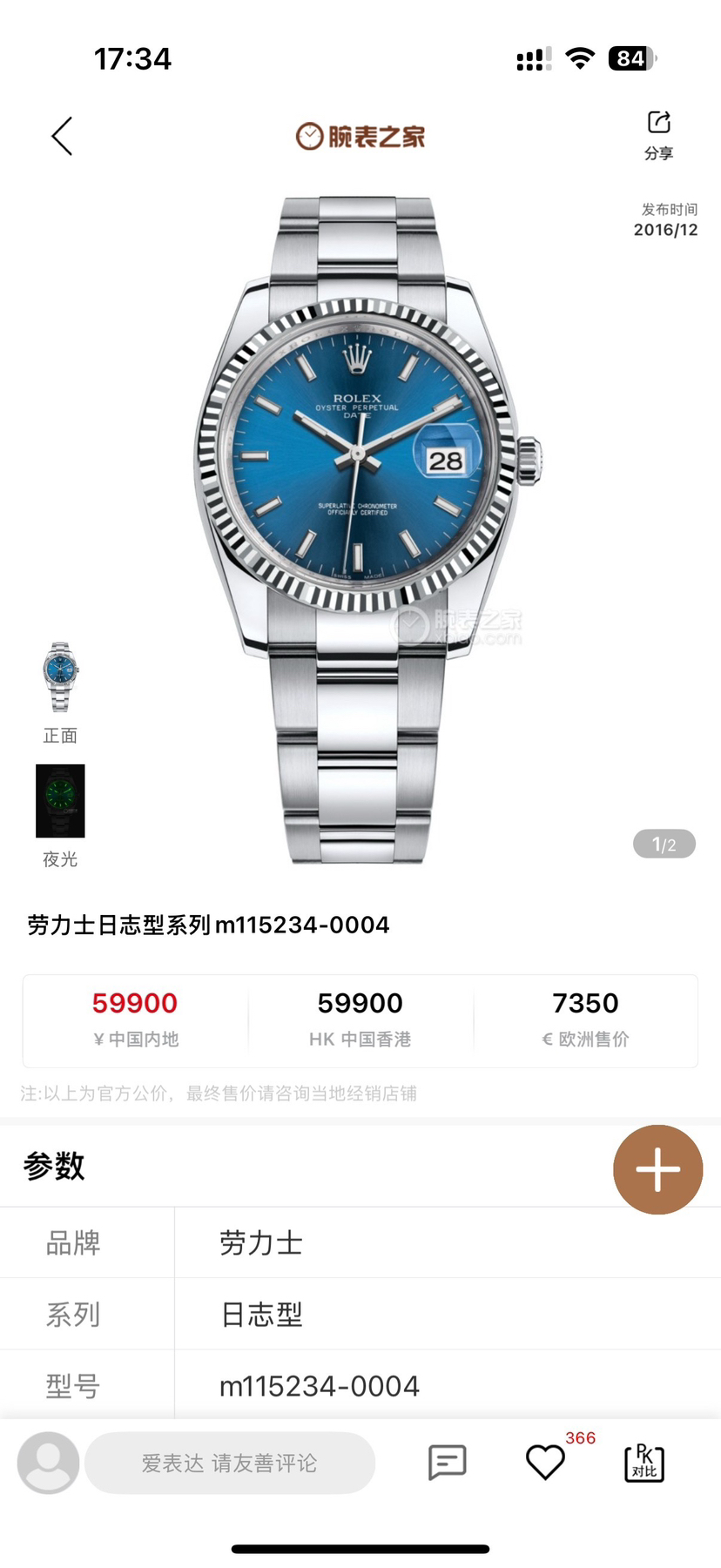 劳力士/Rolex 日志型 m115234-0004