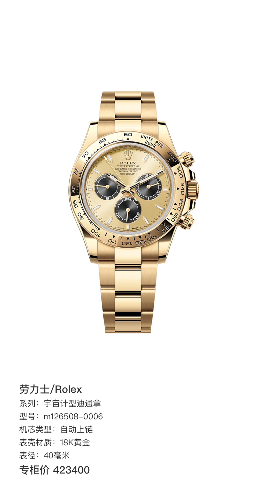 劳力士/Rolex 宇宙计型迪通拿 m126508-0006 自动上链 18K黄金 40毫米 附件:24全套 专柜价423400
