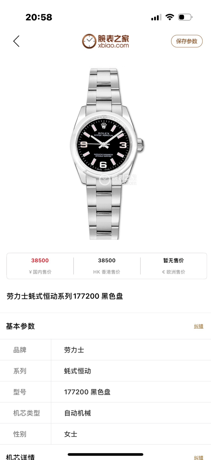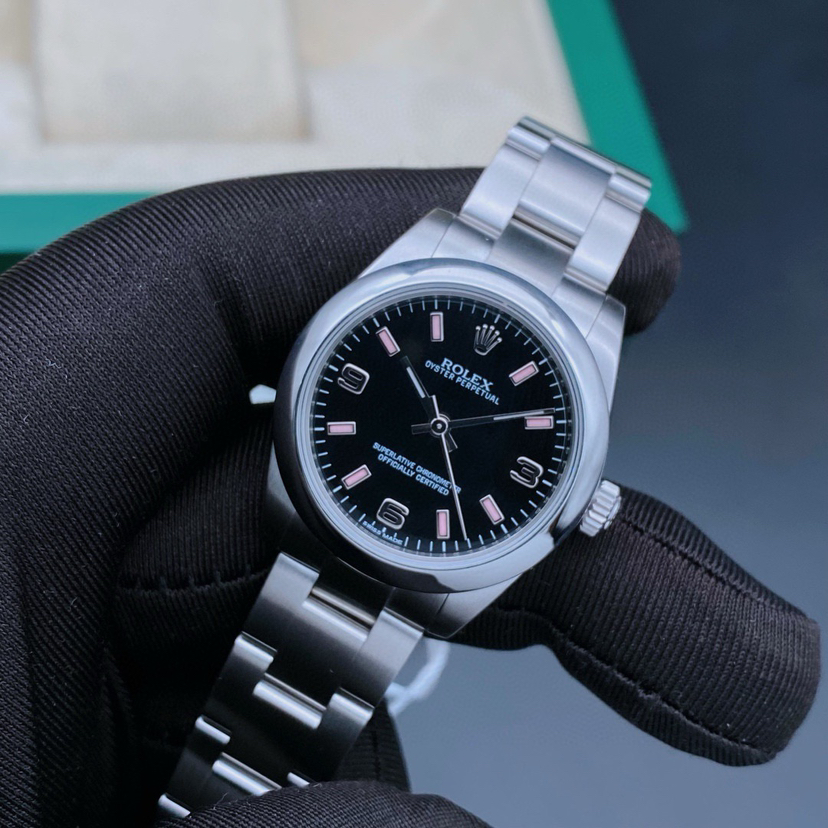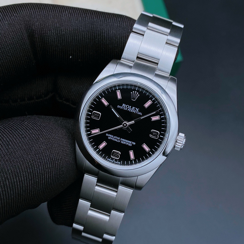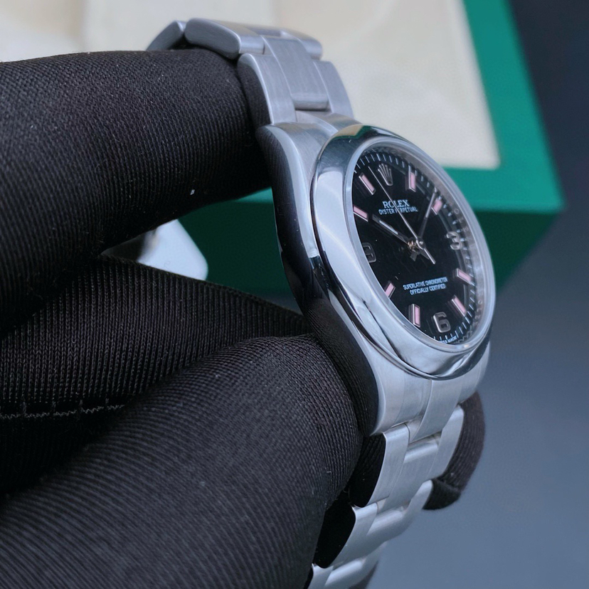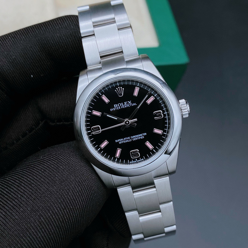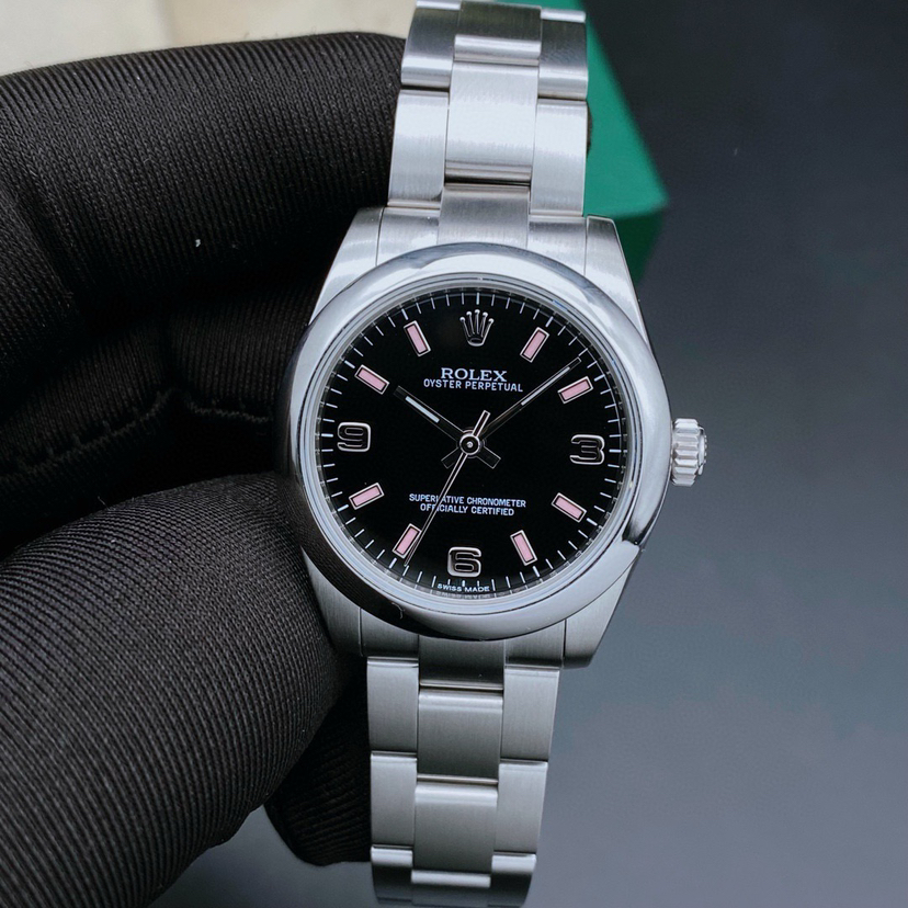 劳力士蚝式恒动系列177200女士腕表,自动机械,表径31mm,904蚝式精钢材质,黑盘369数字刻度,全套 参考公价38500,