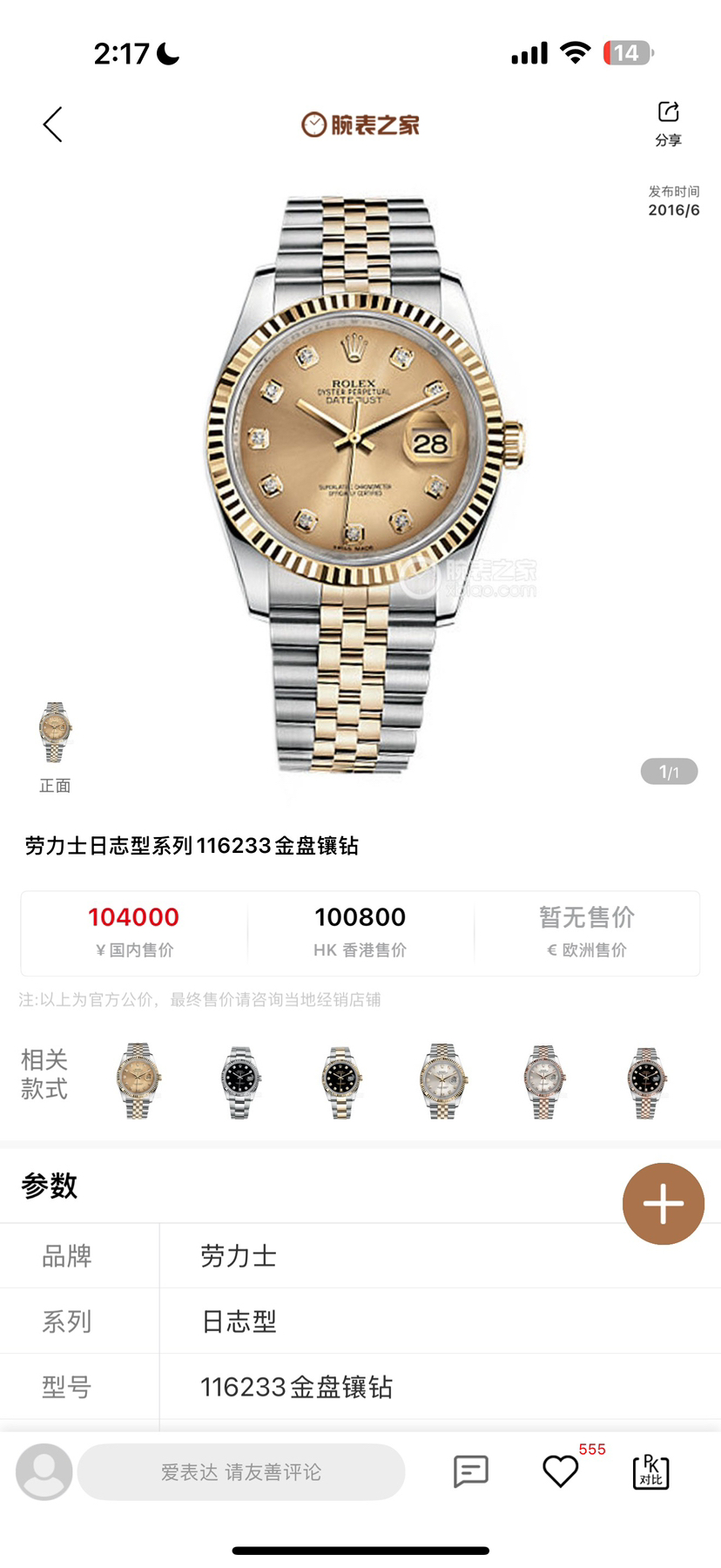 钢带遗失劳力士/Rolex 日志型 36 m116233-0150 自动机械机芯 黄金钢(904L不锈钢和18ct黄金的组合) 36毫米 专柜价104000