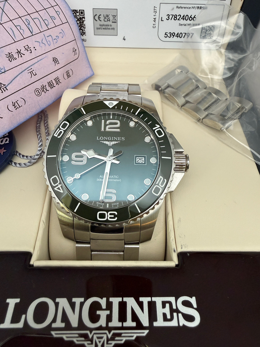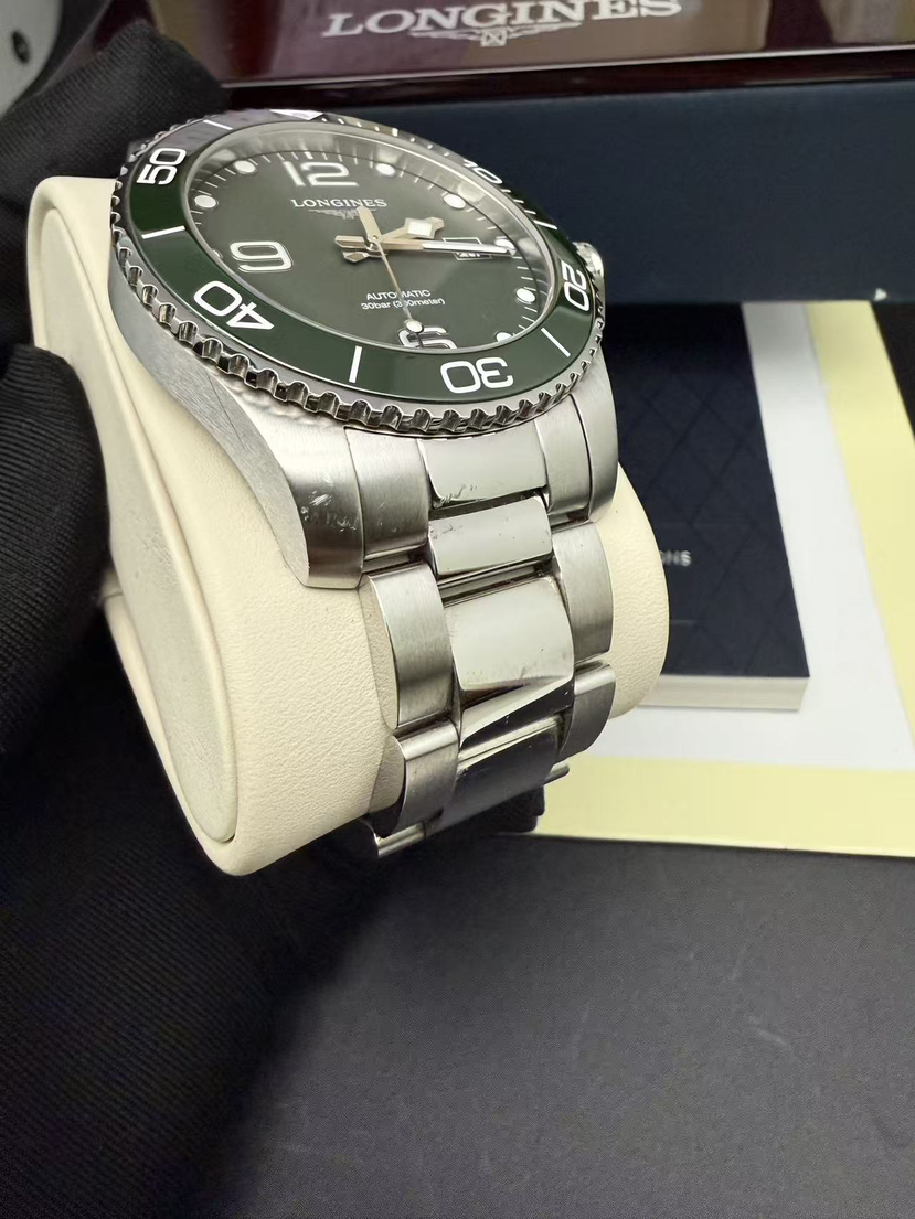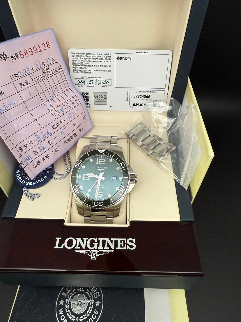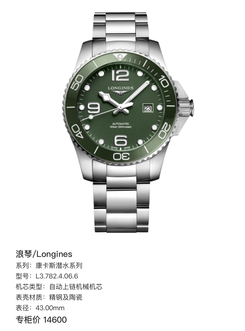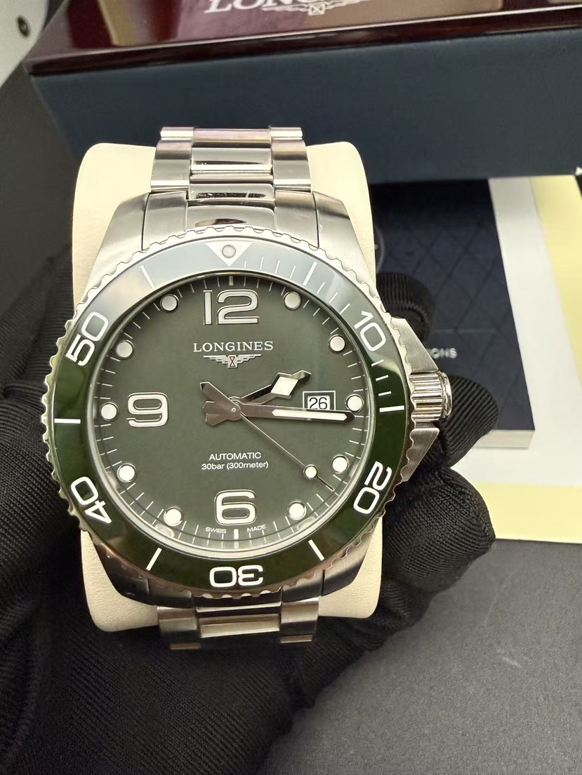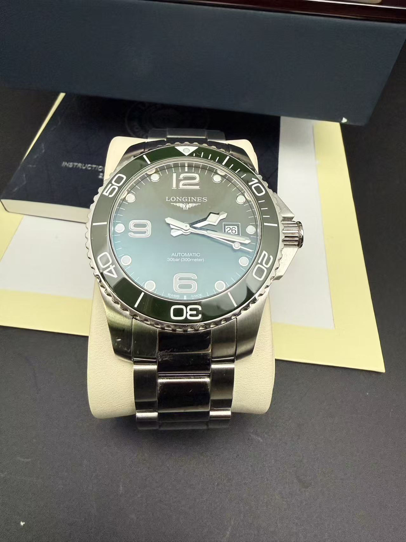 浪琴/Longines 康卡斯潜水系列 L3.782.4.06.6 自动上链机械机芯 精钢及陶瓷 43.00mm 专柜价14600。24年大全套带票,现货好价!针盘完美,全原无修,原始品相。“假一赔三”“支持万表/中检复检”,过中检。