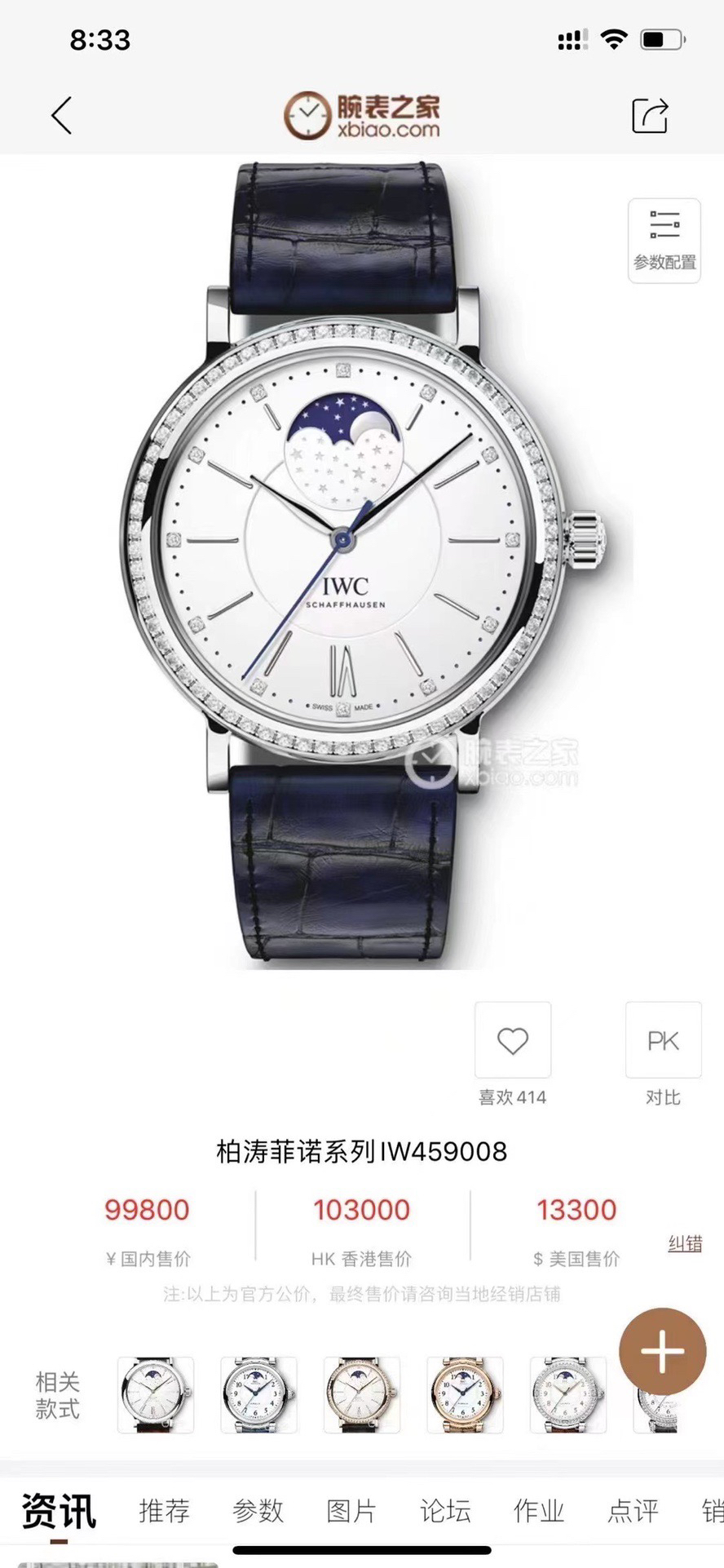 万国/IWC 柏涛菲诺系列 IW459008 自动上链 精钢 10.8 专柜价99800