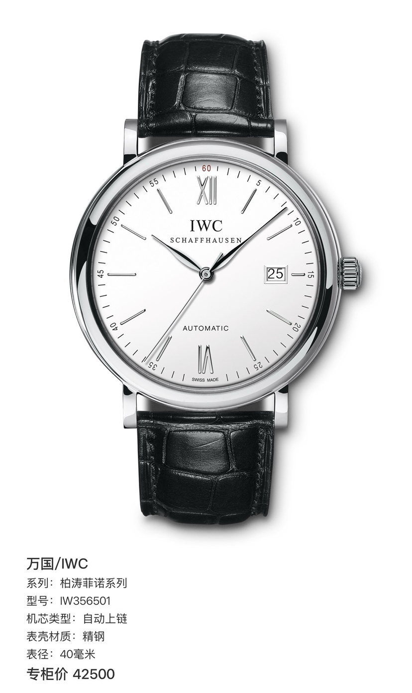万国 柏涛菲诺系列 IW356501 自动上链 精钢 40mm表径 专柜价42500 单表好价。