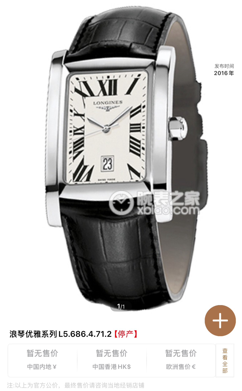 浪琴 优雅系列 L5.686.4.71.2 后配扣 石英机芯 33.8x41.3mm表径 单表好价