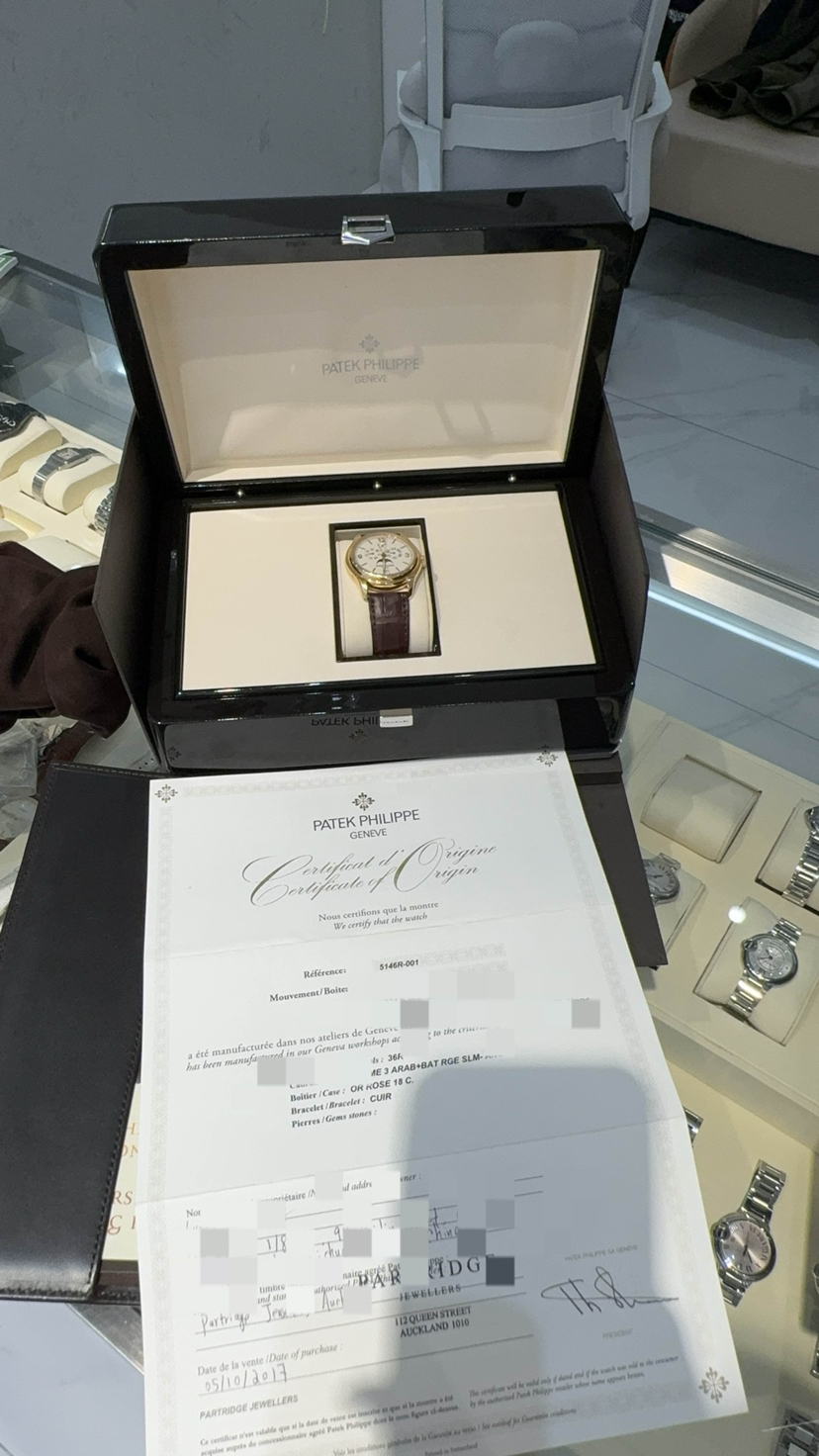 百达翡丽-复杂功能时计,5146R-001,17年全套,全历月相功能,39毫米玫瑰金自动机械,原价368800