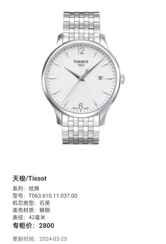 [未使用]天梭经典T063.610.11.037.00石英男性