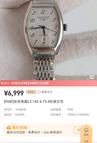 [95新]浪琴典藏L.2.642.47.34机械男性