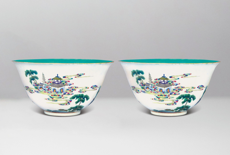 艺术品 艺术品清 五彩玉宇琼楼纹碗一对