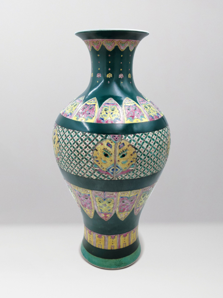 清 黑地粉彩兽纹瓶