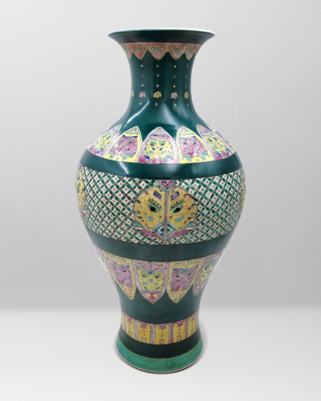 艺术品 艺术品清 黑地粉彩兽纹瓶