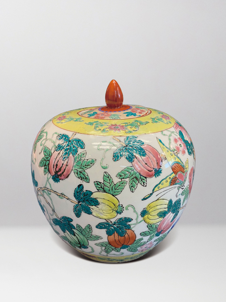 艺术品 艺术品晚清 瓜果纹粉彩盖罐