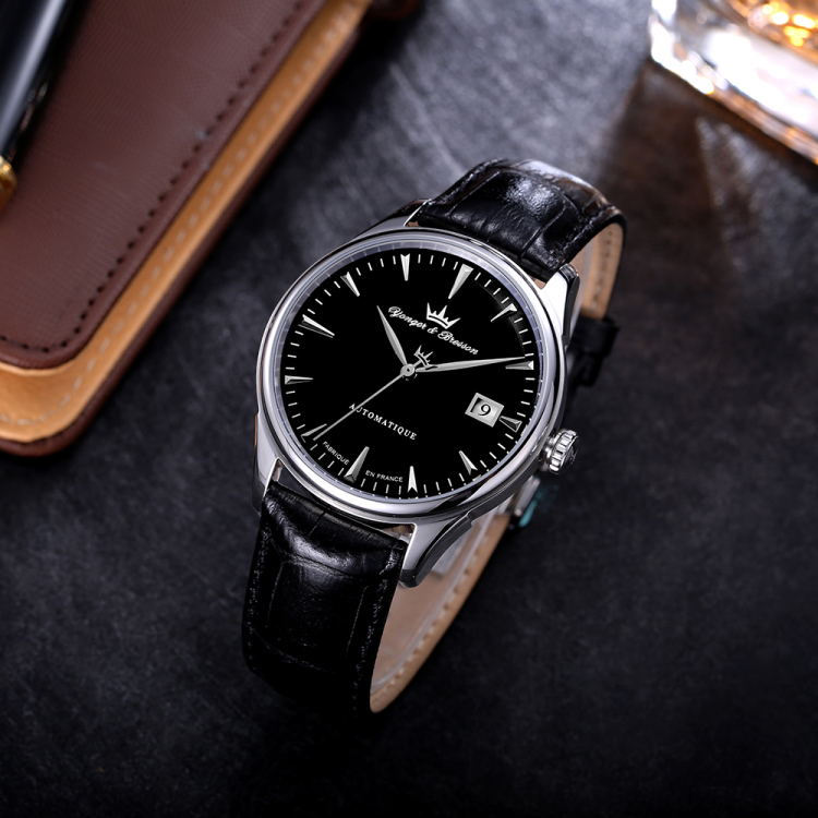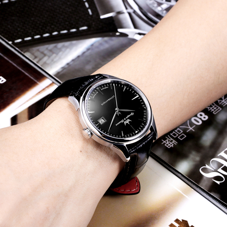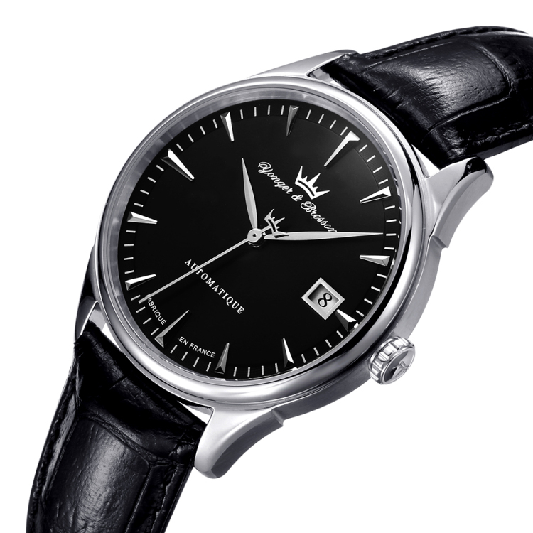 纯白设计,干净利落,3点方向日历显示,6点方向自动机械标志及下面的法国制造标识,9点方向小表盘设计,12点方向品牌logo标志