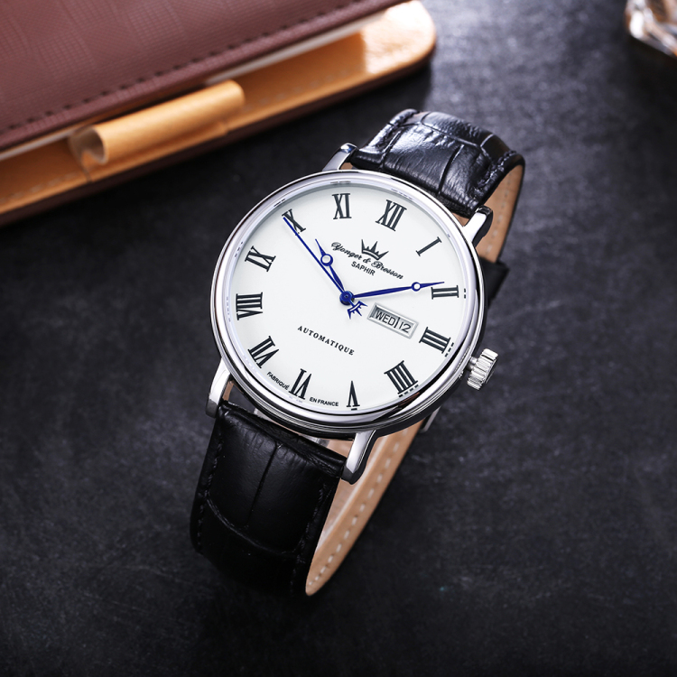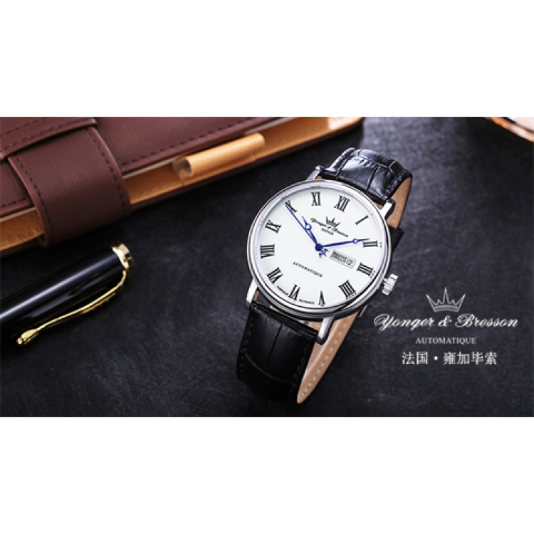 法国复古时尚腕表品牌:雍加毕索Yonger& Bresson-Beaumesnil 博梅尼勒堡系列 YBH 8372-10 机械男表(已绝版) ¥2300